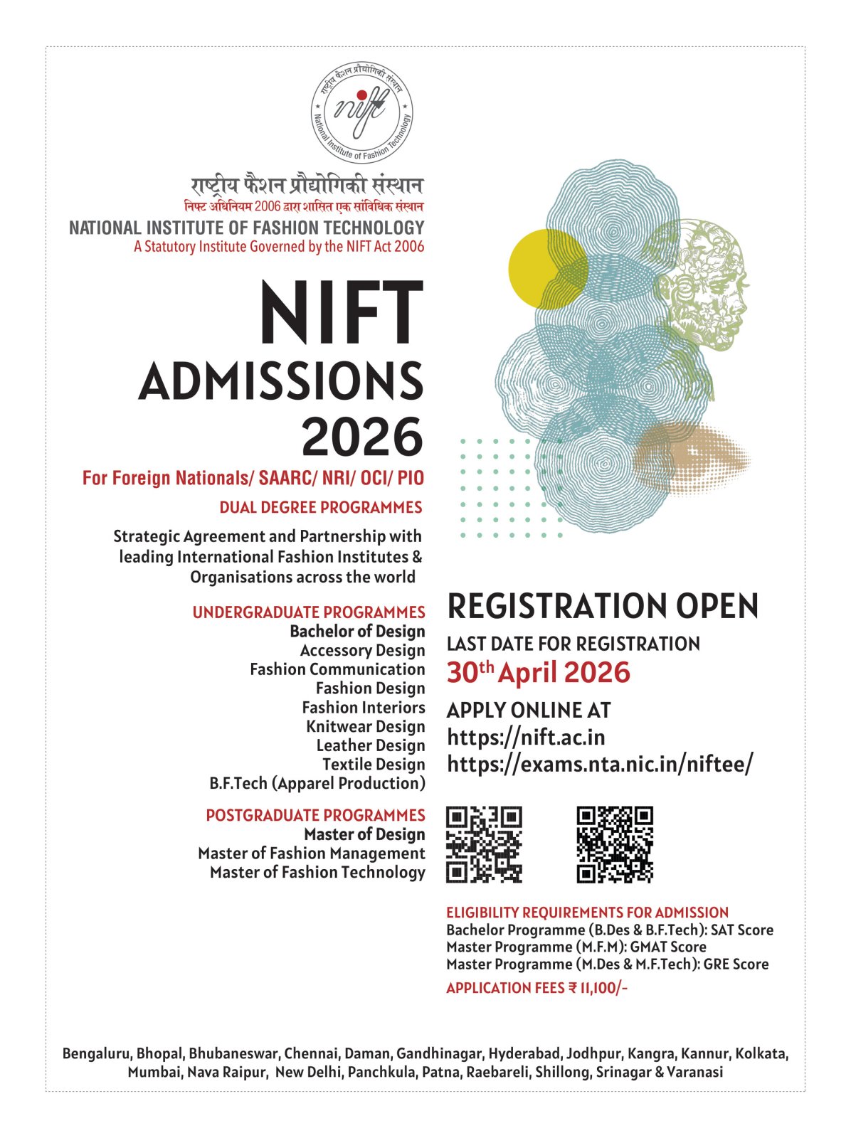 National Institute of Fashion Technology (NIFT), a premier Indian institute in the sphere of fashion under the Ministry of Textiles, Government of India, has opened the Admissions for the year 2026.