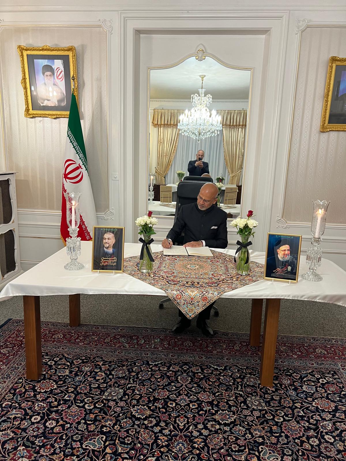 Ambassador Mridul Kumar signed the condolence book at Embassy of Iran in Berne on 23 May 2024