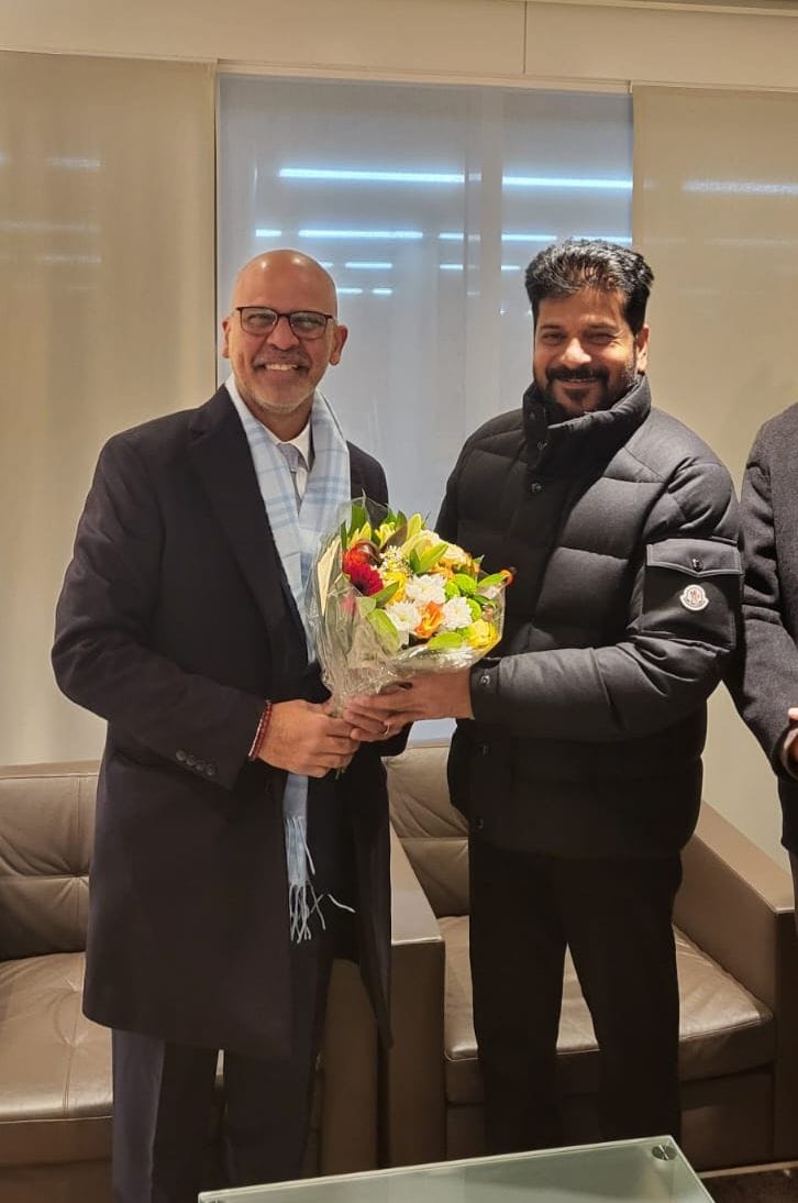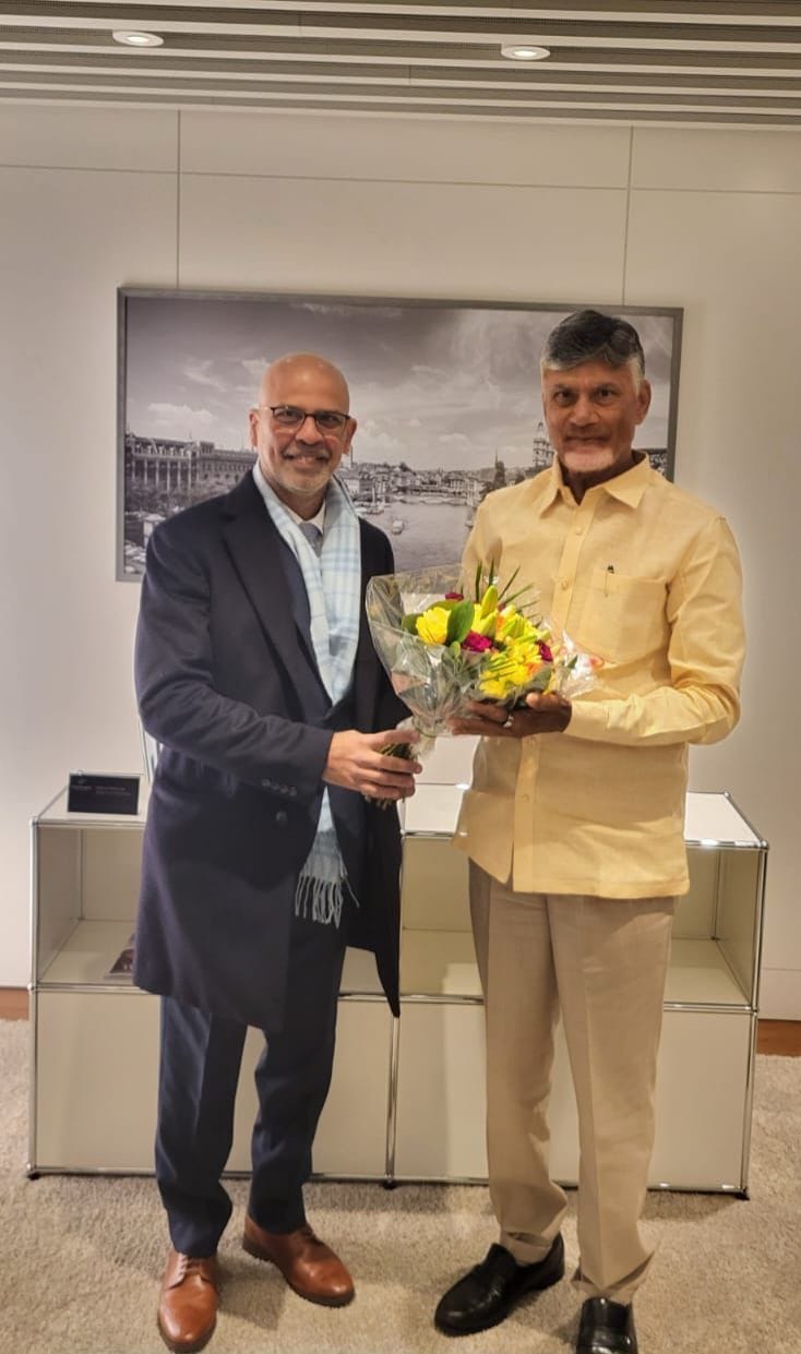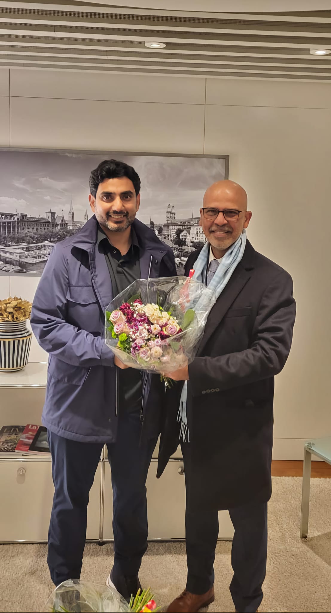 Ambassador Mridul Kumar welcomed Hon’ble Minister of Food Processing Industries Chirag Paswan and Hon’ble Chief Minister of Maharashtra Devendra Fadnavis to Switzerland on 19 January 2025. Also welcomed Hon’ble Minister of Civil Aviation Shri Ram Mohan Naidu Kinjarapu; Hon’ble Chief Minister of Andhra Pradesh Shri Chandra Babu Naidu & IT Minister of Andhra Pradesh Mr. Nara Lokesh; Hon’ble Chief Minister of Telangana Shri Anumula Revanth Reddy and Hon’ble Minister for IT, Industries, Commerce & Legislative Affairs, Govt of Telangana Mr. D Sridhar Babu Duddilla on 20 January 2025.
