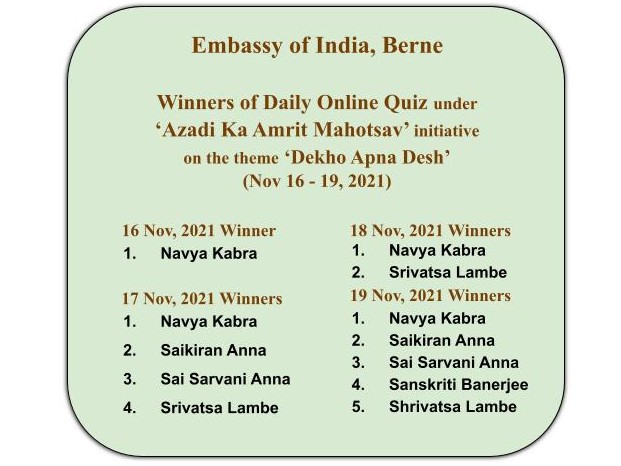 - Visit of Hon’ble Minister of State for External Affairs and Culture to Switzerland