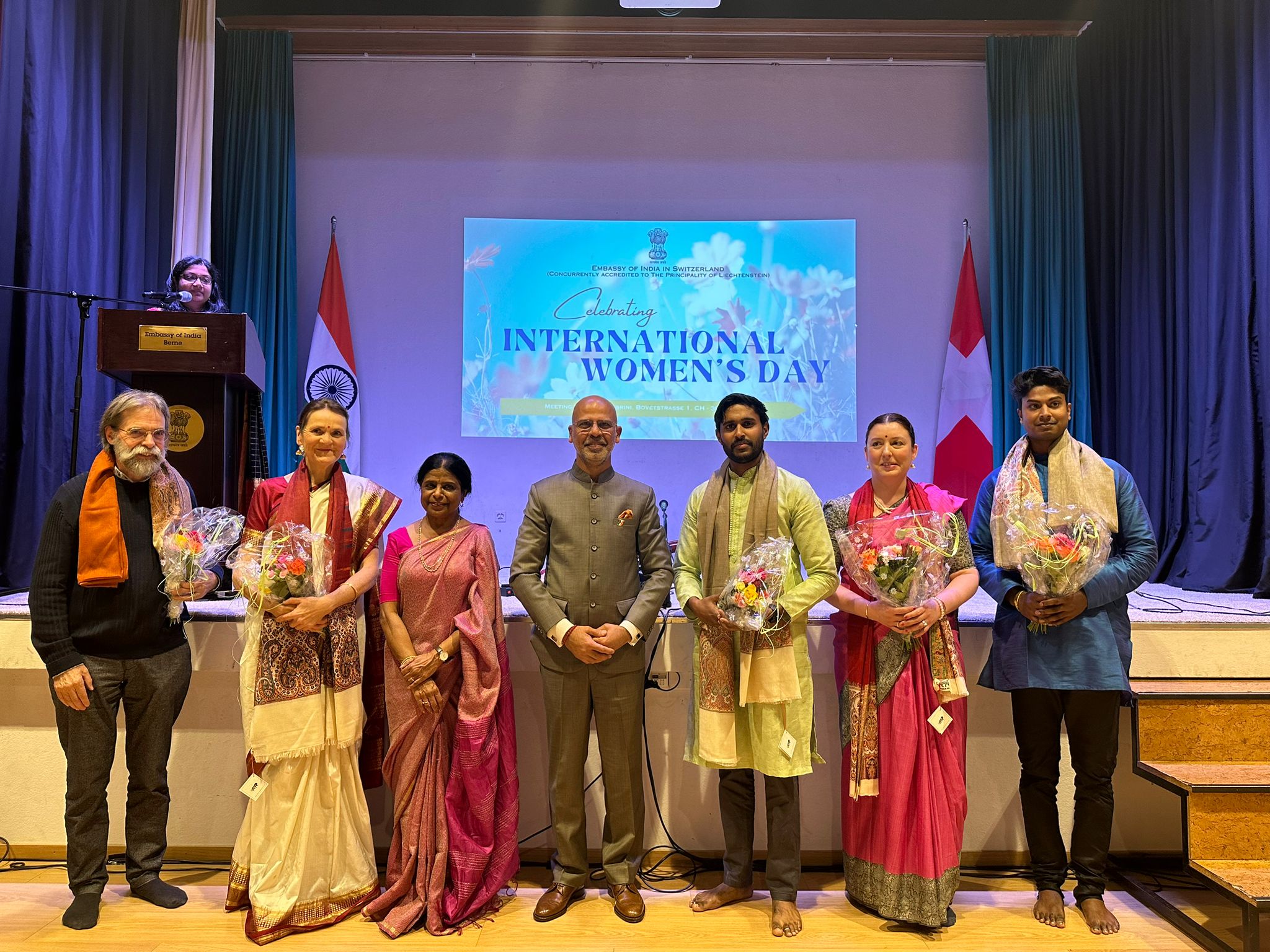 The event was jointly inaugurated by Ambassador Shri Mridul Kumar and six guest speakers, Ms. Andrea Rauber Saxer, Head of the Bilateral Economic Relations Division – SECO, Dr. Archana Sharma, Senior Advisor-International Relations – CERN, Ms. Martha Wiedemann, Associate Director - Badrutt’s Palace Hotel, St. Moritz, Ms. Suki Dusanj-Lenz, CEO & Founder – Once Upon A Media, Ms. Ulrike Erbslöh, Managing Director - Fondation Beyeler, Basel & Ms. Vijaya Rao, Founder - Nateschwara Academy, Baden & former Cultural Ambassador to UNICEF.
