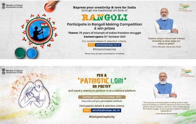 Unleash Your Creativity & Show Your Love for India by participating in the 3 exciting competitions announced by Ministry of Culture, Government of India as part of Azadi Ka Amrit Mahotsav