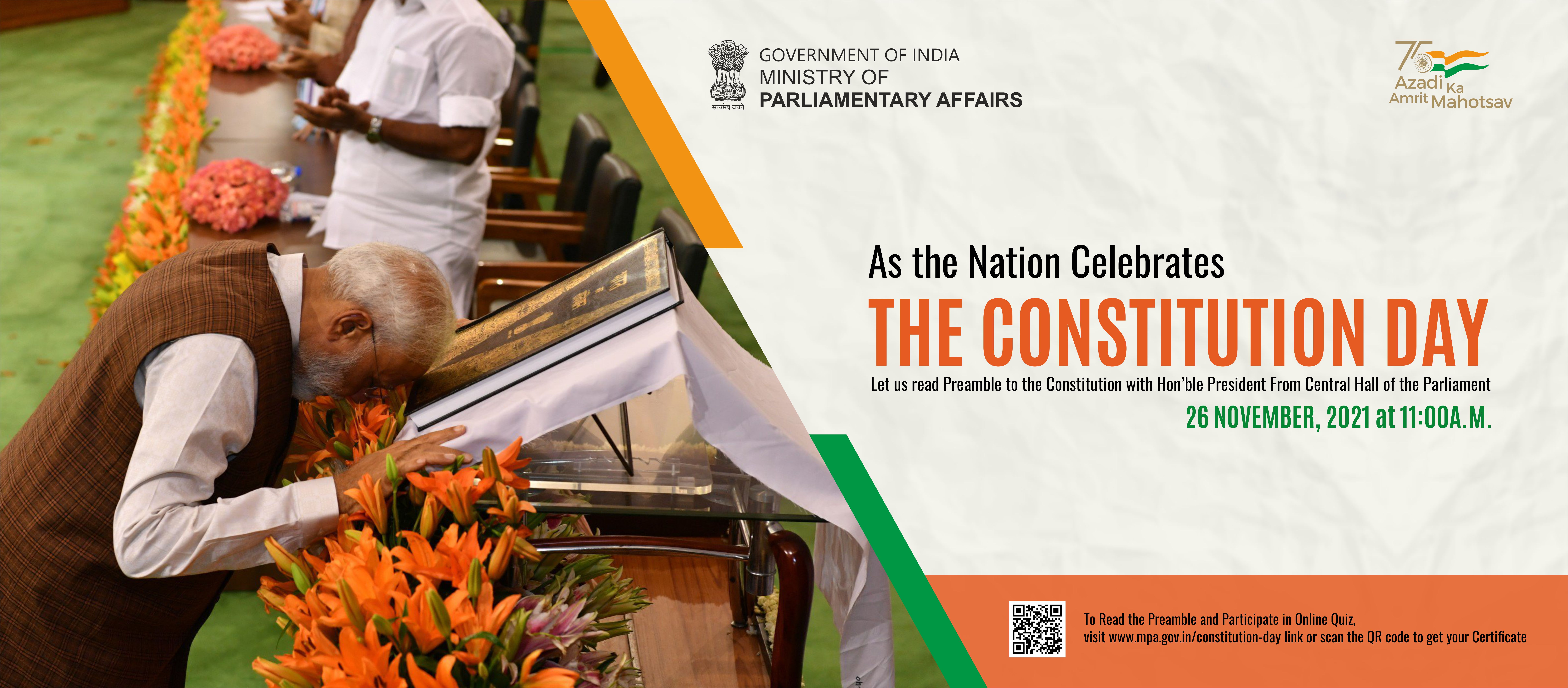 The Government of India will celebrate the Constitution Day on 26 November, 2021 to commemorate the day of adoption of Indian Constitution.