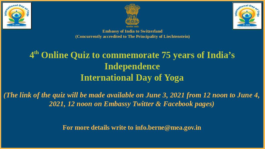 4th Online Quiz to commemorate 75 years of India's Independence on the theme 'International Day of Yoga'