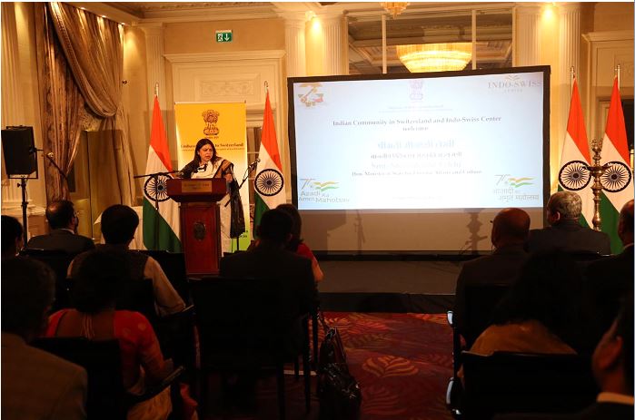 On the occasion of the visit of Minister of State for External Affairs Smt. Meenkashi Lekhi to Switzerland, Mission in association with Indo-Swiss Centre organised “Namaste Switzerland” diaspora event in Zurich on 30 September 2021 as part of Azadi Ka Amrit Mahotsav celebrations. The event was well attended by members of the Indian diaspora. At the event, MoS addressed the members of the diaspora and appreciated the efforts of Indo-Swiss Centre and welcomed the participation of diaspora in Azadi Ka Amrit Mahotsav.
