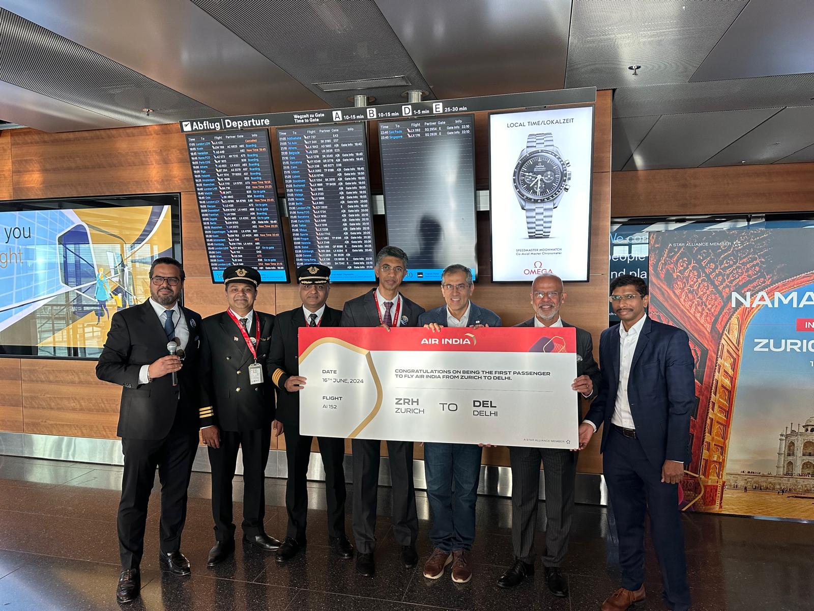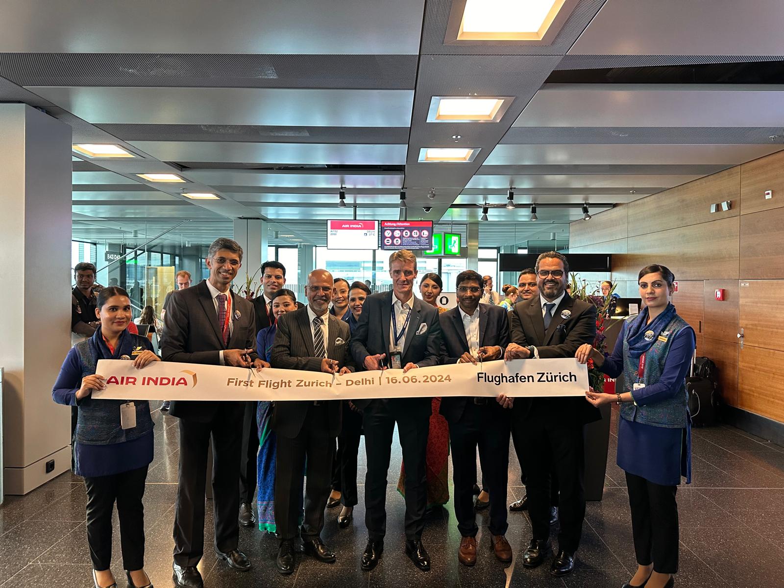 Ambassador Mridul Kumar flagged off inaugural Air India flight from Zurich to Delhi at Zurich Airport on 16 June 2024