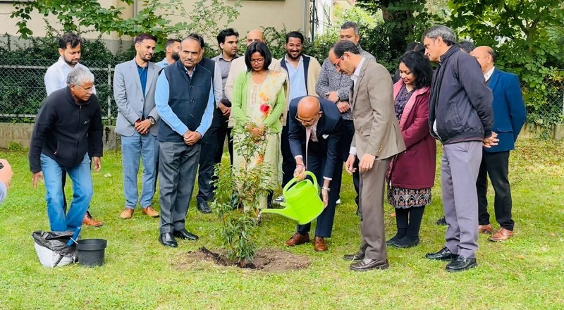 As part of the global campaign "Plant4Mother" "एक पेड़ माँ के नाम", launched by Prime Minister Sh. Narendra Modi to honour mothers and raise awareness about our shared commitment to protect Mother Nature and the environment, a sapling plantation event was organized at the Embassy on 16 September 2024 where Ambassador Mridul Kumar along with the Embassy Officials in Chancery, planted a sapling.