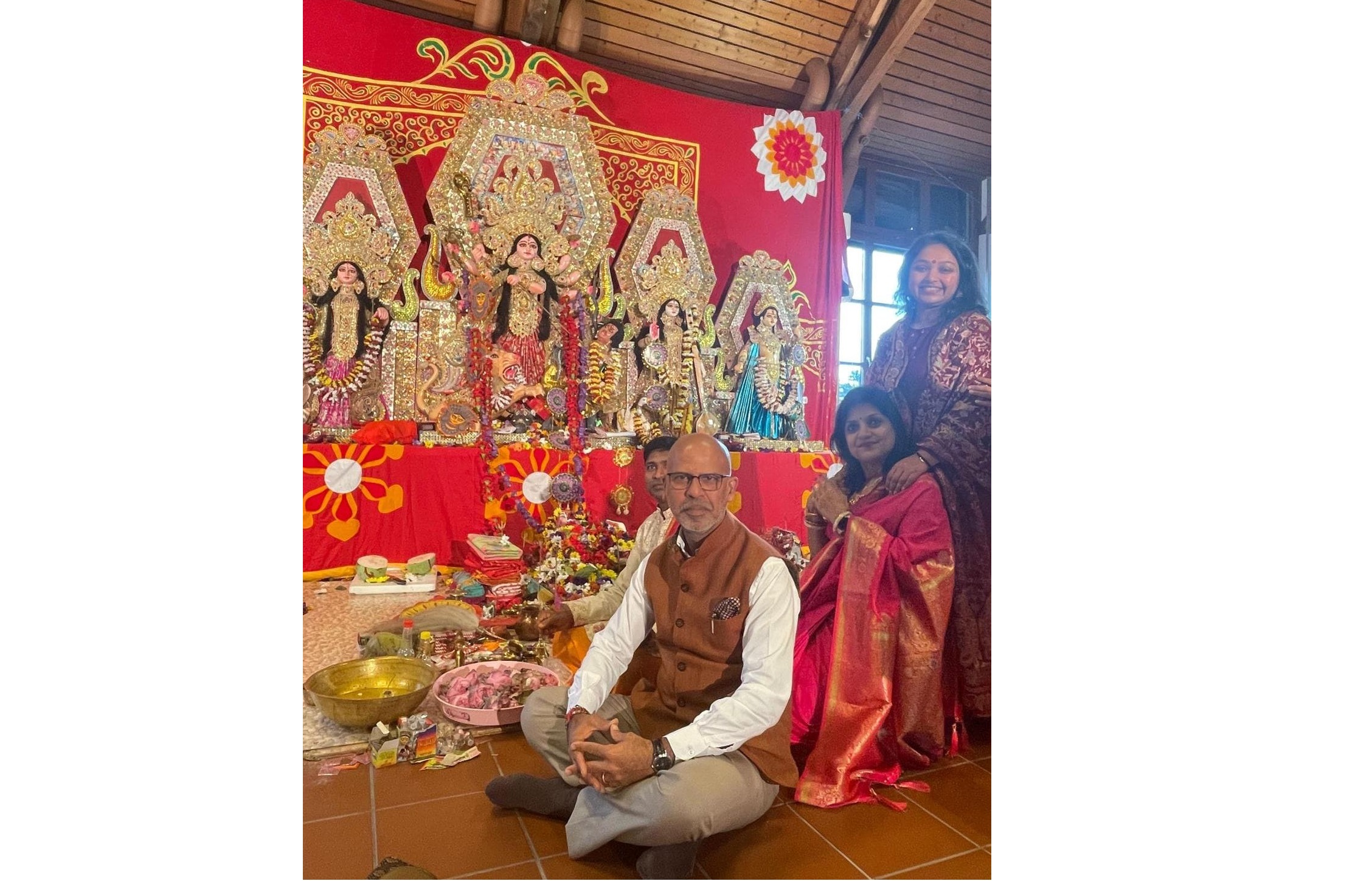 Ambassador Mridul Kumar offered Pushpanjali to Mother Goddess Durga at the grand Durga Puja celebrations organized by diaspora association Swiss Puja in Zurich on the auspicious day of Navmi. With over 2,000 devotees attending festivities, this is the biggest puja celebration of its kind in Switzerland.