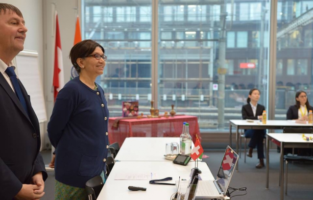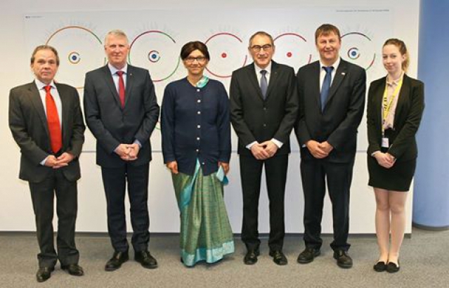 Ambassador also had the honour of meeting Prof. Dr. Ruedi Nützi, Director, Prof. Dr. Rolf Schaeren, Deputy Director, Prof. Dr. Guy Ochsenbein, Head of Institutes and Prof. Michael Jeive, Head of SSRCC of the University of Applied Sciences and Arts, and further opportunities for cooperation were discussed. A key area of interest in India is the Swiss VET system, which is considered as the key to high-tech, balanced growth and full employment. The School's focus on practice-oriented education as well as small and medium-sized enterprises (SMEs) was emphasised by the Director of the School of Business and identified as highly significant. It is also a top priority in India, as stressed by the recent visit to Switzerland of Mr Rajiv Pratap Rudy, the Indian Minister of State Skill Development & Entrepreneurship. It was agreed that the School's expertise in practice-oriented education was of great relevance and use to India in fashioning its vocational education system along Swiss lines. All parties expressed interest in strengthening relations through further cooperation such as the establishment of an indo-Swiss platform on Vocational Education & Training.
