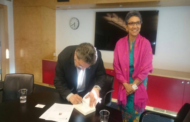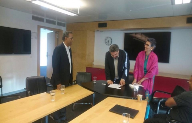We were privileged to visit IMD Lausanne, which is going to host the launch of the Indo- Swiss Innovation and Investment Forum on March 23, 2017. We are very grateful to Dr. Jean-Francois Manzoni, the President of IMD and also to Professor Charles Dhanaraj, who has made this possible. Dr. Jean-Francois Manzoni was kind enough to sign a copy of his book “The Set-up-to-Fail Syndrome” for the Ambassador. We are also grateful to Prof. Johan Govea for all the help he has given in organising the event. Prof. Jay Narayanan also joined us.