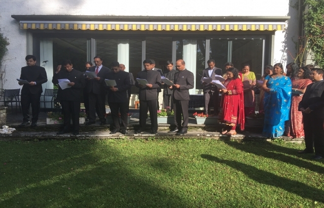 The 71st  Independence Day of India celebrations were held at the Embassy residence on 15th August, 2017. The national flag was unfurled by Ms. Smita Purushottam Ambassador of India to Switzerland followed by singing of the National Anthem and reading of President’s address to the nation.