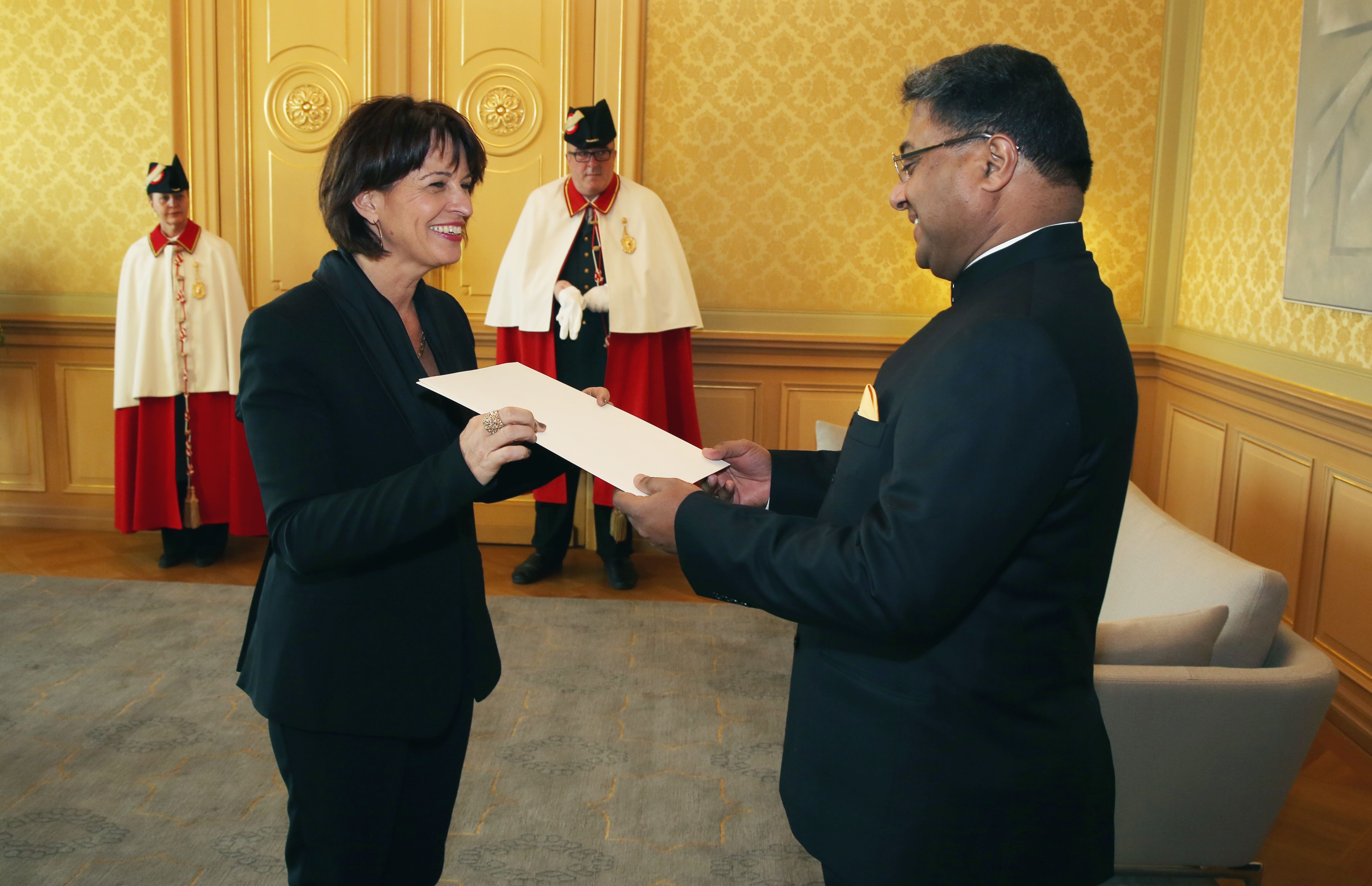 Shri Sibi Geroge, Ambassador of India to Switzerland presented credentials to Her Excellency Mrs. Doris Leuthard, President of the Swiss Confederation on 21.11.2017.