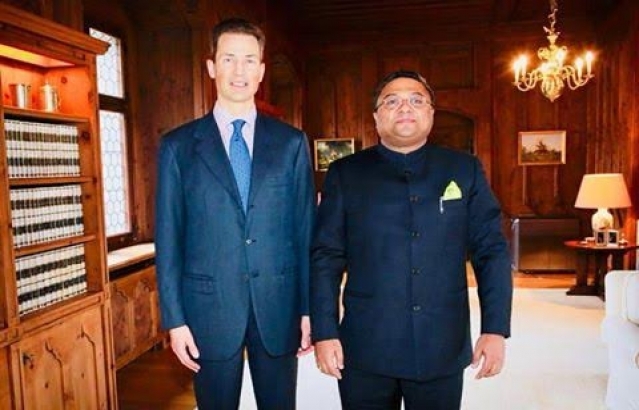Ambassador Mr. Sibi George presented Credentials to His Serene Highness Hereditary Prince Alois of Liechtenstein on 9 March 2018 at Vaduz Castle