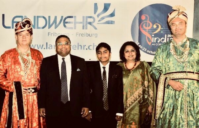 Ambassador Sibi George addressed ‘Maharajas Gala in La Landwehr’ organized by La Landwehr, official music of the Canton of Fribourg, which has a continuous history of over 200 years. Ambassador and his family is pictured with Mr Alain Deschenaux, President of La Landwehr. La Landwehr music band will visit India in October 2018.
