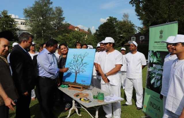 Embassy of India to Switzerland, the Holy See and Liechtenstein celebrated World Environment Day with planting of fruit trees including by Children, at India House gardens in Berne. They also painted a symbolic tree of joint celebrations.