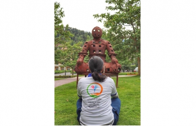 Images of celebrations of International Day of Yoga at picturesque Swiss Alps city of Bad Ragaz, hosting Europe’s largest sculpture exhibition.