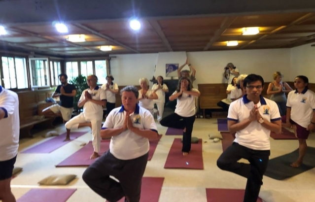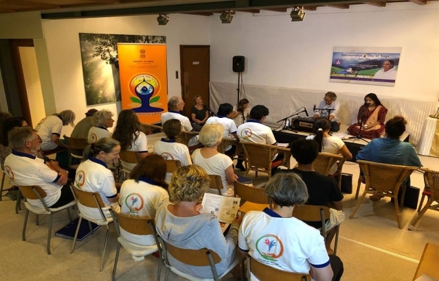 International Day of Yoga celebrations at Mata Amritanandmayi (Amma) Center in Switzerland on June 21, 2018.