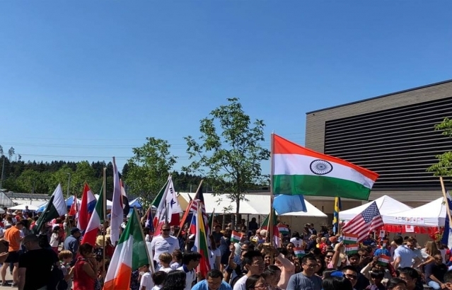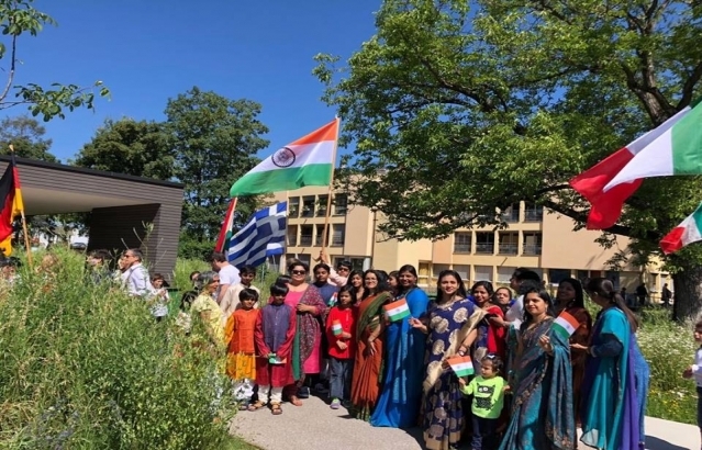Enthusiastic response for India Stall and Yoga Counter set up by Embassy of India Spouses Association at the International School of Berne in Switzerland on June 23 during the International Day 2018.
