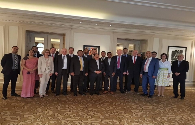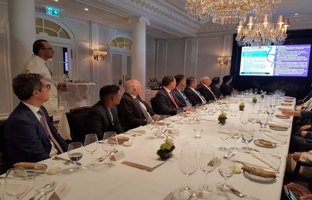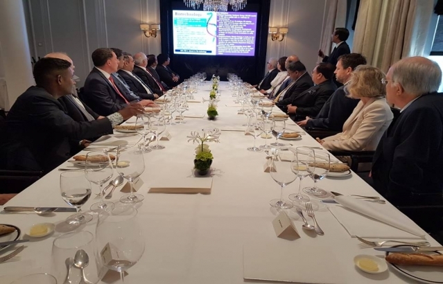Minister of Health and Family Welfare, Government of India HE Mr. J. P. Nadda at a luncheon interactive meeting of CEOs and senior Representatives of Health Care companies and Institutes in Switzerland and Swiss Indian Chamber of Commerce hosted by Ambassador Sibi George in Zurich on May 19, 2018.