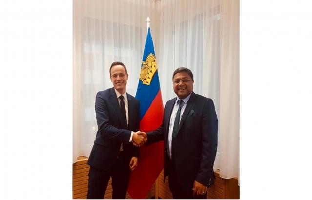 Ambassador Sibi George with Ambassador Martin Frick, Director of theMinistry of Foreign Affairs of the Principality of Lichtenstein at Vaduz onNovember 8 2018.