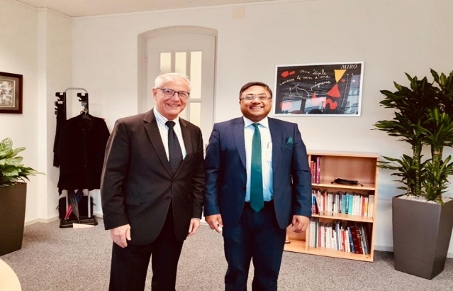 Ambassador Sibi George with Ambassador Johannes Matyassy,Director of the Directorate of Consular Affairs of the FederalDepartment of Foreign Affairs of Switzerland on November 16,2018.