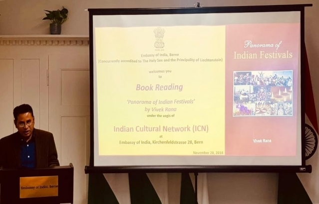 Glimpses of a Book Reading session by Indian Cultural Network(ICN) on‘Panorama of Indian Festivals’ authored by Vivek Rana (Nov 20) at Embassyof India in Bern.