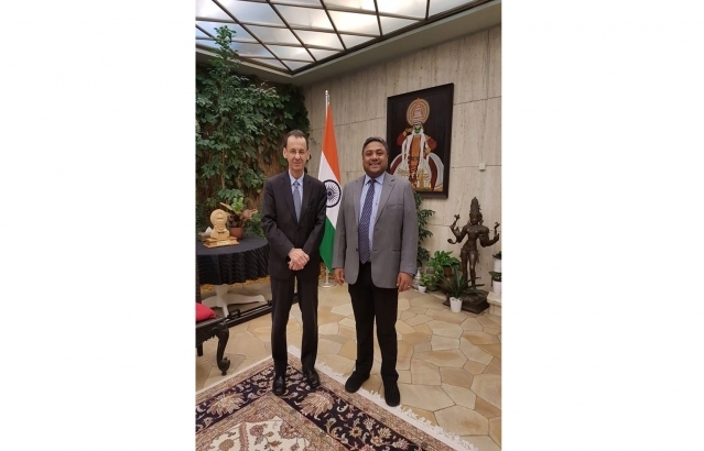 Ambassador Sibi George with HE Mr. Evandro Didonet, Ambassador of Brazil to Switzerland at India House in Berne on Dec 21.