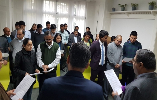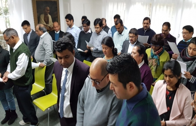 Ambassador Sibi George administering the Swachhata Pledge during the Swachhata Pakhwada (Jan 1-15) at Embassy of India, Berne.
