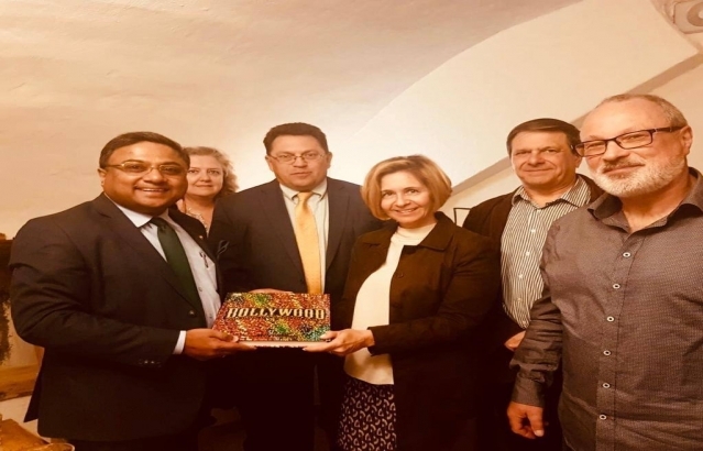 Amb Sibi George with Mayor of Montreux HE Mr Laurent Wehrli and Mayor of Villeneuve Ms Corinne Ingold on March 28. Senior officials of cities of Montreux and Villeneuve and senior officials of the Embassy were present.