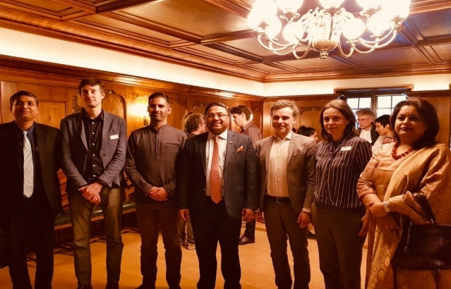 Amb Sibi George with Pro Helvetia Director Mr Philippe Bischof at a reception that Pro Helvetia hosted for renowned Swiss artists associated with India on April 4 at Zürich.
