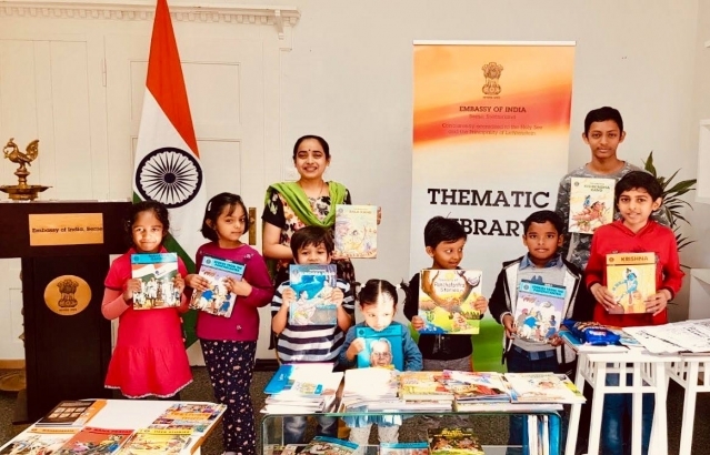 Glimpses of classes on Indian culture & history and yoga sessions held for children at the Thematic Library of the Embassy of India in Berne.
