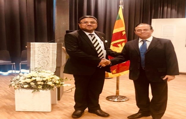 Amb Sibi George and Madam Joice Sibi with HE A.L.A. Azeez, Ambassador/PR of SriLanka in Switzerland at an Inter-religious service on Apr 28 in Bern in solemnmemory of the victims of the Easter Sunday terror attacks in Sri Lanka.