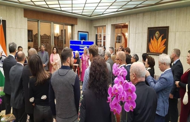Amb Sibi George and Madam Joice Sibi with the family of Dr. Nik Gugger, Indian origin Member of Swiss Parliament at a reception at India House in Berne to felicitate him on receiving D Litt Honoris Causa from Kalinga Institute of Industrial Technology.