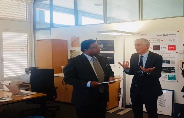 Amb Sibi George at école Polytechnique Fédérale de Lausanne (EPFL) with Dr.Martin Vetterli, President EPFL on May 27. Also present were First Secretary Dr.Piyush Singh and Dr. Olivier Küttel, Head of International Affairs. EPFL has asignificant number of Indian students.