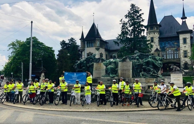 Celebrating Mahatma in Switzerland on World Cycling Day in Berne on June 3rd 2019