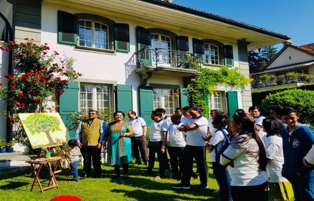 Glimpses of joint panting of symbolic tree to mark world environment day on jun 5 as part of the celebrations of the 150th birth anniversary of Mahatma Gandhi in Berne. The youngest and eldest members of the diaspora join hands.