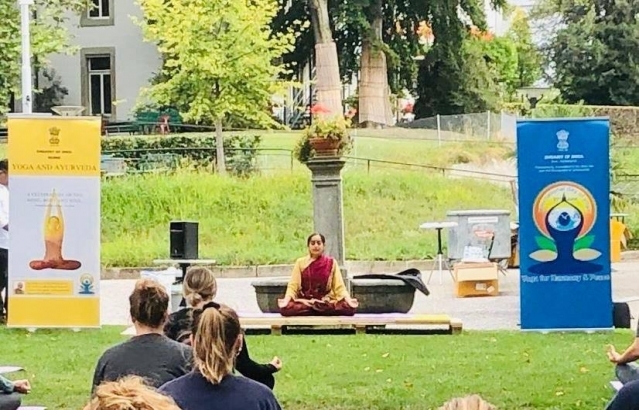 YOGA & AYURVEDA FESTIVAL IN SWITZERLAND: Yoga lovers assembled and practiced Yoga at the premises of Insel Hospital in Berne during Yoga & Ayurveda Festival organized jointly by Embassy of India and Insel Hospital on Sept 22.