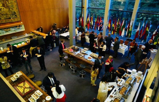 VEGETARIAN FOOD FESTIVAL IN SWITZERLAND: Glimpses of a Vegetarian Food Festival organised on Oct 2 to mark the 150th Birth Anniversary of Mahatma Gandhi at Universal Postal Union (UPU) in Berne.