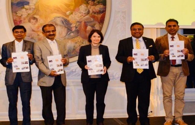 RELEASE OF AYURVEDA BULLETIN IN SWITZERLAND: HE Amb Nora Kronig Romero of Swiss Federal Office of Health along with Amb Sibi George and Ayurveda experts in Switzerland releasing the new edition of Ayurveda Bulletin by Embassy of India in Switzerland on Oct 25 in Bern.