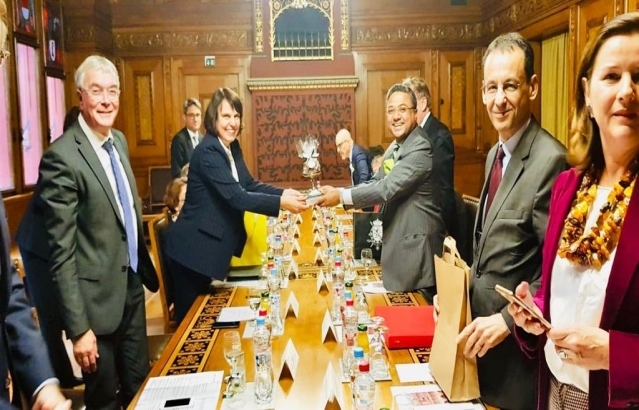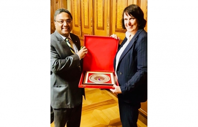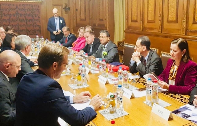 A MEMORABLE DAY IN BASEL: Amb Sibi George with HE Mme Elisabeth Ackermann,President of Canton of Basel (Governor of State of Basel) and Members of Basel Cantonal Council at the historic Rathaus in Basel city on Oct 29. Also present were Ambassadors of Brazil, Belgium, Croatia & Italy.