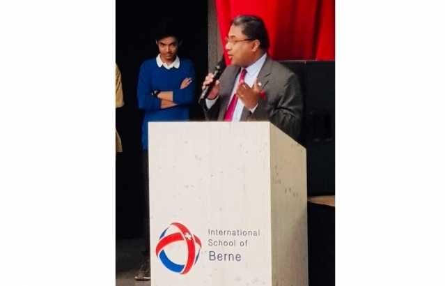 Amb Sibi George speach at the Indian Cultural Day at International School in Bern on Nov 19. Mesmerizing dance and music performances by students.