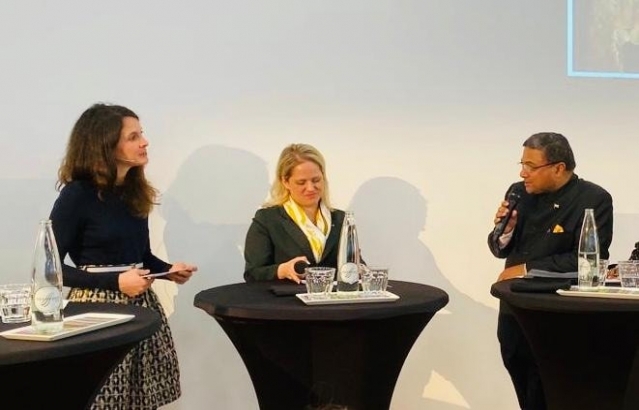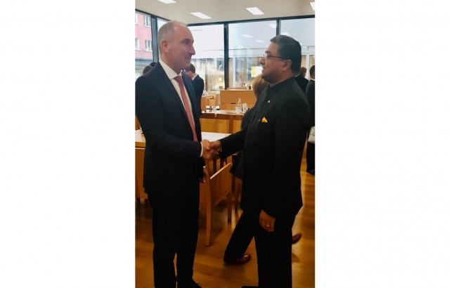 Amb Sibi George with HE Mr. Adrian Hasler, Prime Minister of Principality of Liechtenstein on Nov 29, Vaduz at Ambassador's Information Event. He also joined a panel discussion with HE Dr. Katrin Eggenberg, Foreign Minister of Principality of Liechtenstein.
