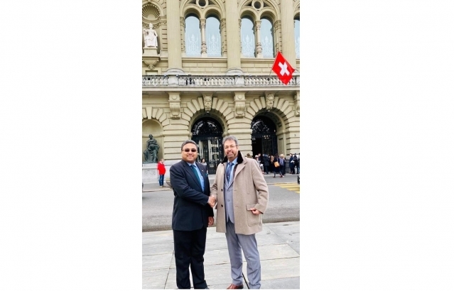 Amb Sibi George with Dr. Gugger at the Parliament. Hearty Congratulations Dr. Nik Gugger, Hon’ble Member of Swiss Parliament on his oath taking at the Federal Palace on Dec 2nd 2019 .