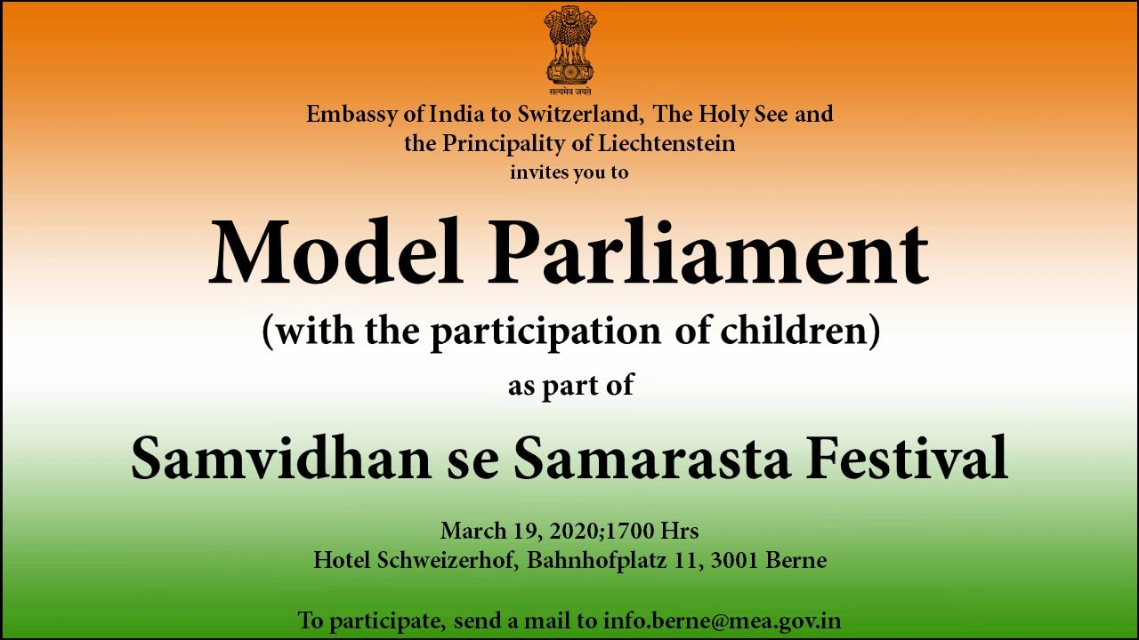 Model Parliament' for Children being organized by the Embassy of India on 19 March in Berne