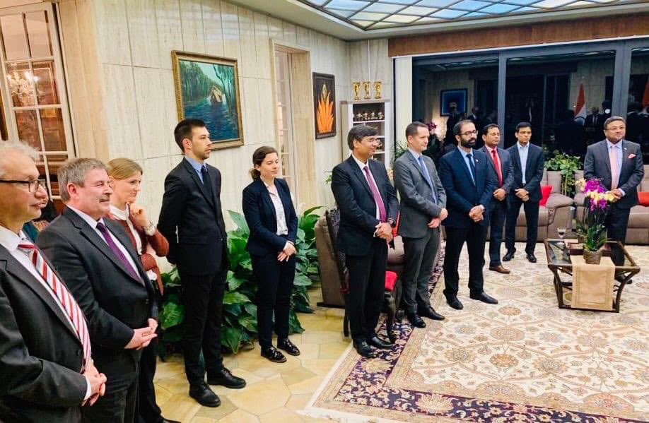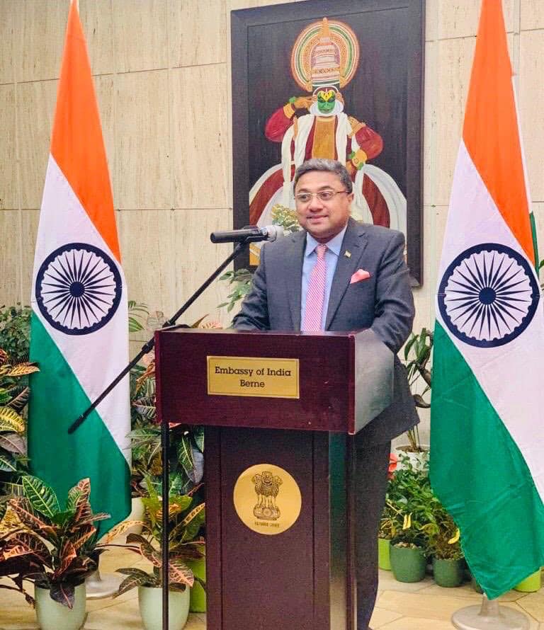 Glimpses of a reception that Amb Sibi George hosted at India House on the occasion of India-Switzerland Joint Economic Commission meeting in Bern, Switzerland, chaired by Mrs. Nidhi Mani Tripathi of India and HE Ambassador Erwin Bollinger of Switzerland.