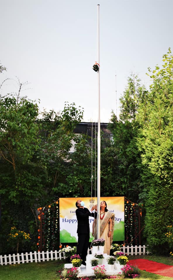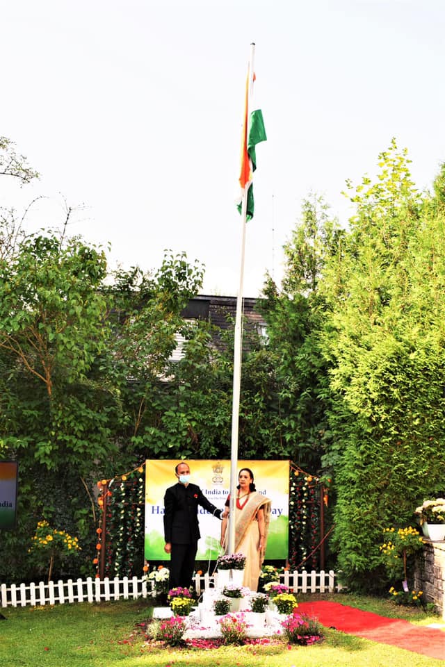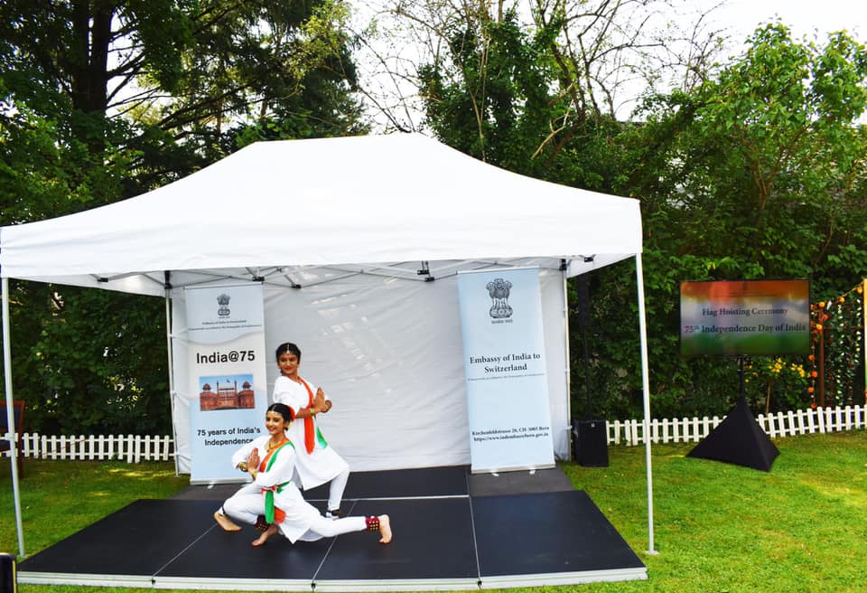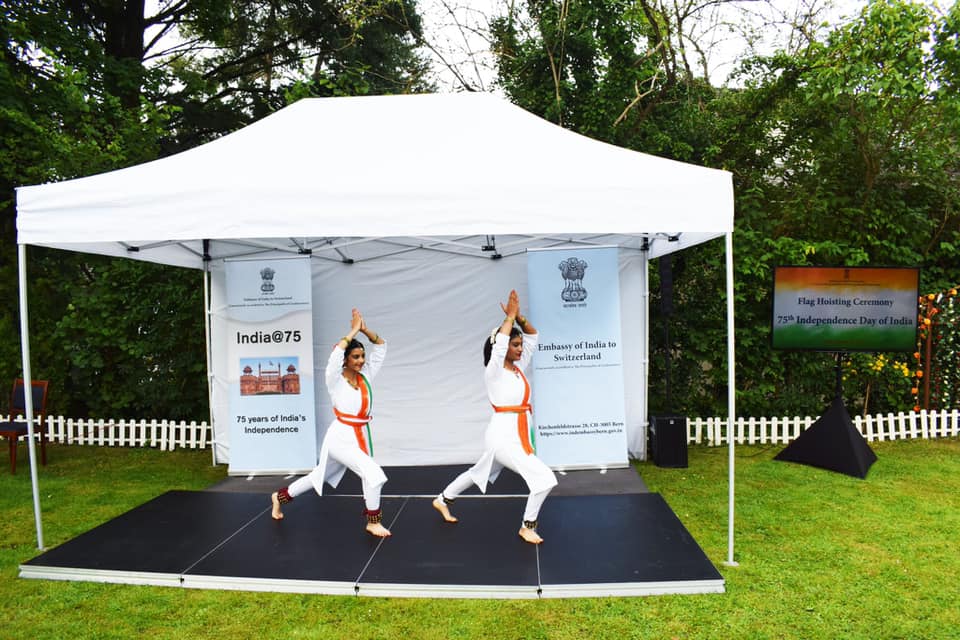 The 75th Independence Day was celebrated on 15th August, 2021 at the premises of India House in Berne. The event commenced with H.E. Ambassador Monika Kapil Mohta hoisting the National Flag followed by the singing of the National Anthem by the attendees. Thereafter, the Address of the Hon’ble President of India to the Nation on the eve of the 75th Independence Day was read out by Ambassador. Ambassador then delivered her special address highlighting various themes of AKAM (Azaadi Ka Amrit Mahotsav). The event included cultural performances by Children of the Indian diaspora and screening of special videos highlighting Azadi Ka Amrit Mahotsav (AKAM). During the event, Ambassador Monika Kapil Mohta presented the Pravasi Bharatiya Samman Award medal and certificate to Dr. Shachi Gurumayum, NRI from Switzerland who received this honour for his achievements in the field of Biotech Agronomy. Due to Covid – 19 restrictions, the event was held in a hybrid format with limited physical participation. Prominent members of the Indian Diaspora and Friends of India attended the Flag hoisting ceremony at India House in Berne.