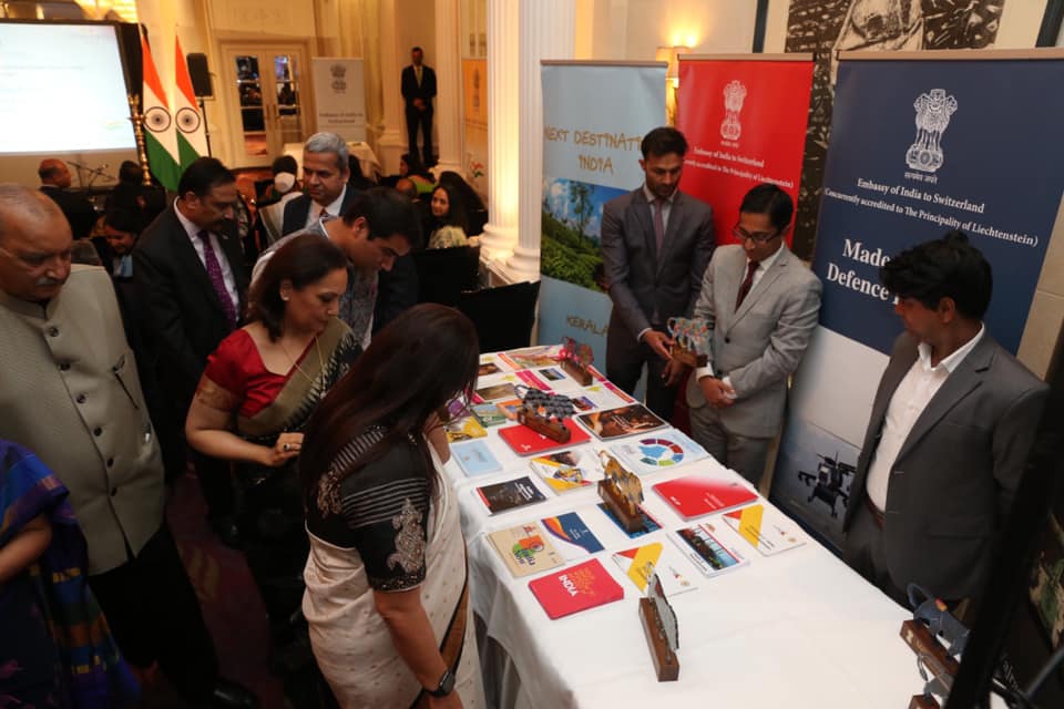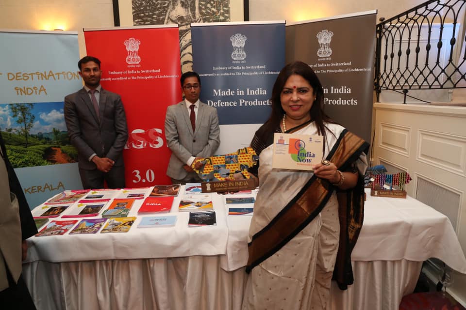 Make in India Promotion in Zurich during the Official visit of Hon'ble Minister of State for External Affairs and Culture Meenakshi Lekhi to Switzerland. Mission showcased an exclusive exhibition on Make In India products including Defence, Tourism, Ayurveda & Indian Tea.