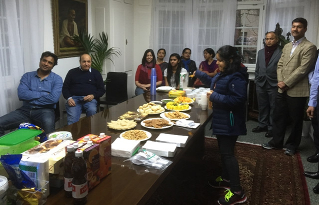 Pravasi Bharatiya Divas 2016 was celebrated in the Chancery on 9th January 2016. Live webcast of the event in Delhi, including Hon’ble External Affairs Minister’s keynote address was shown. A senior member of the Diaspora spoke on his experience of living in this country for the last 36 years. Refreshments were served to the invitees.