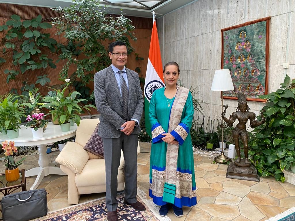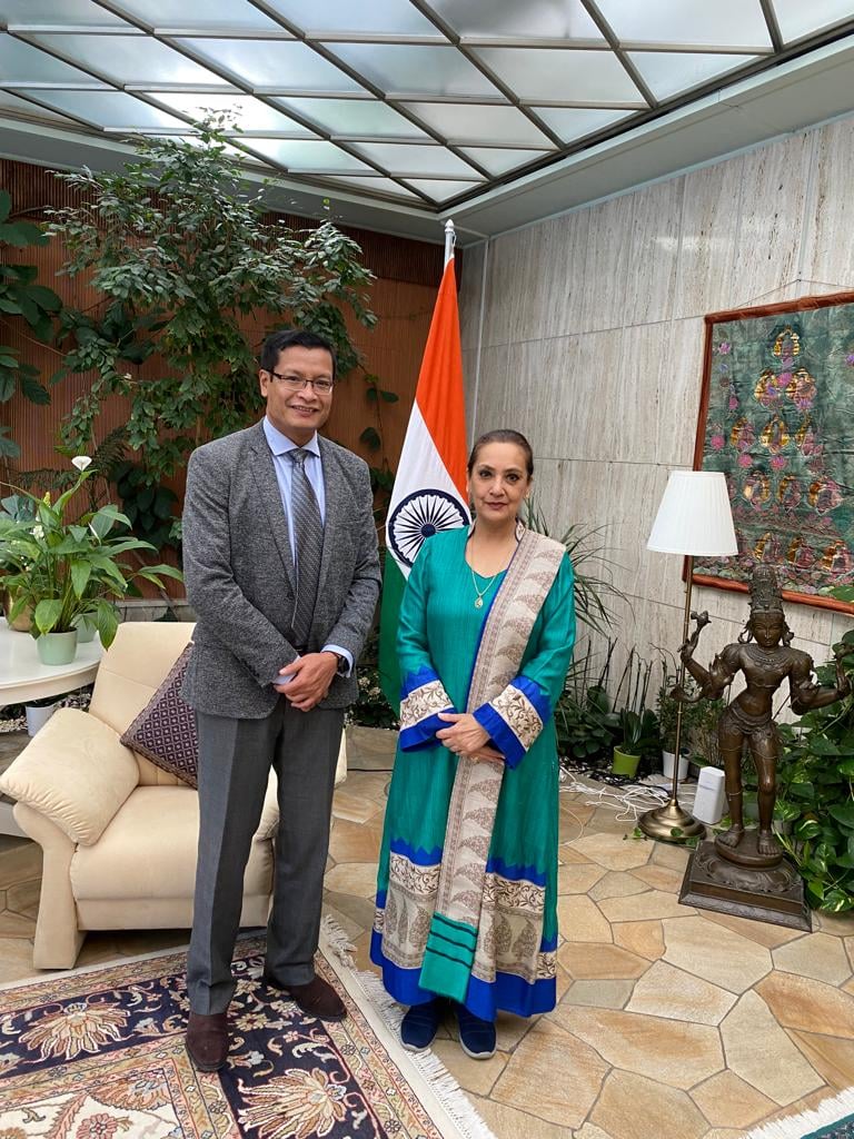 Ambassador Ms. Monika Kapil Mohta received Dr. Shachi Gurumayum, a prominent member of Indian Diaspora in Switzerland and a recipient of the prestigious Pravasi Bhartiya Samman Award 2021 for his achievement in the field of Bio-tech Agronomy.