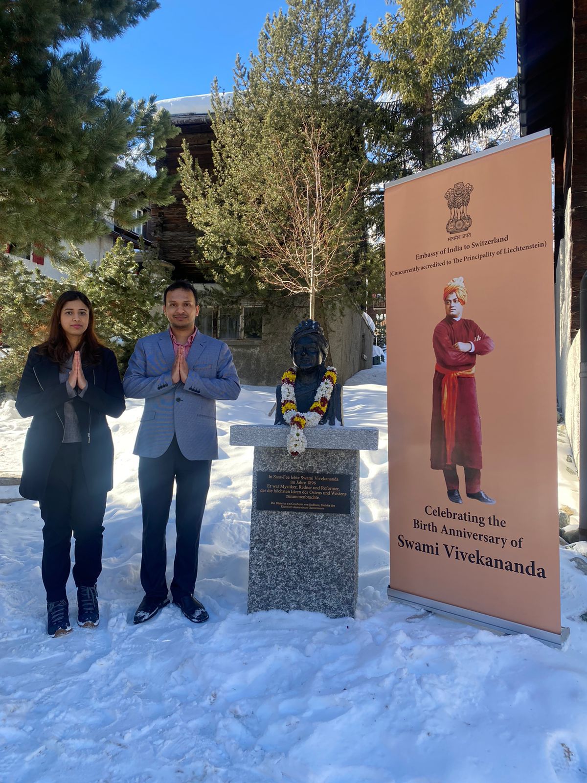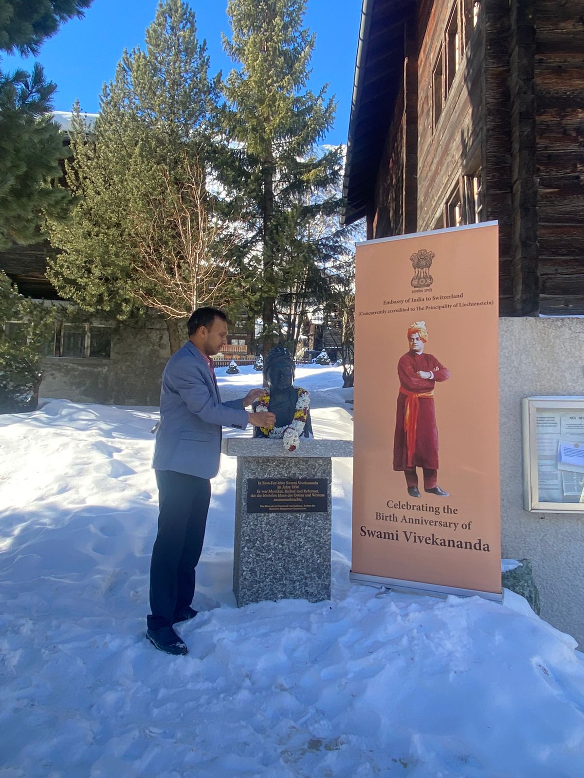 On the occasion of the Birth Anniversary of Swami Vivekananda and National Youth Day, Embassy officials paid homage to Swami Vivekananda at his bust at Sass-Fee, Switzerland.